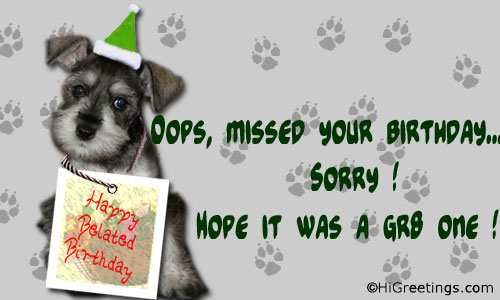 A cute doggy ecard for wishing belated happy birthday. Send this Belated Wishes - Missed your birthday greeting card to your loved ones.