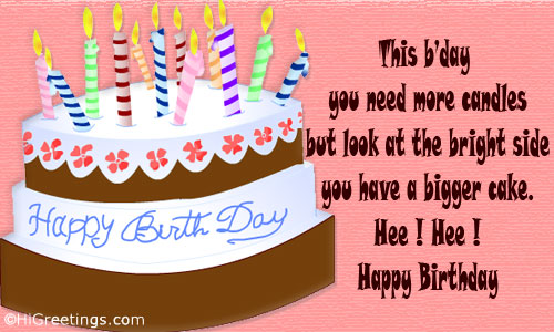 With this birthday you have grown another year older and need more candles to blow, but looking at the brighter side that you have a bigger cake, its fun! Happy birthday!