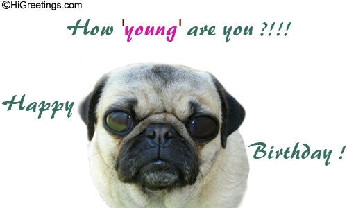 Images speak thousands of words. Thus greet a birthday person with this lovely puppy image ecard asking the true age of the birthday person. Many many happy returns to you!