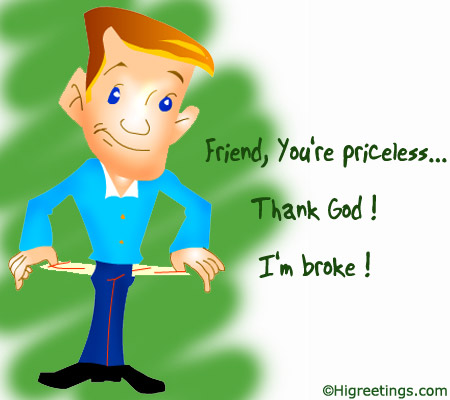 'Friend, you are priceless. Thank God! I'm broke!' Convey this message filled card and make your friend's day a smile-filled day with this priceless online greetings card to your loved ones, from HiGreetings.com.