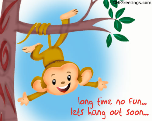 'It's been a long time no fun, let's hang out soon'. Convey this message filled ecard asking your friend to hang out with you again as it has been a long day and you guys have not met for quite some time now.