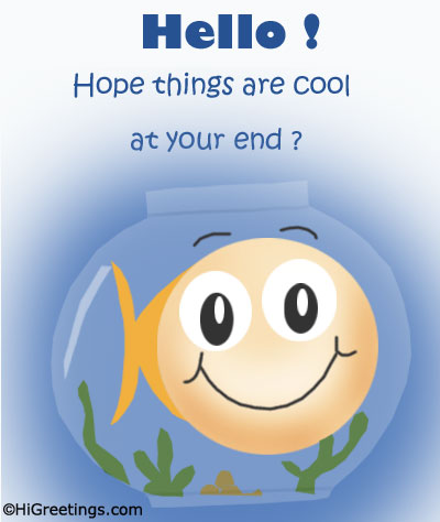 'Hope things are cool at your end?' Drop in a friendship hello card to Say hello and wish your friend a great day with this cute fish character card form HiGreetings.com.