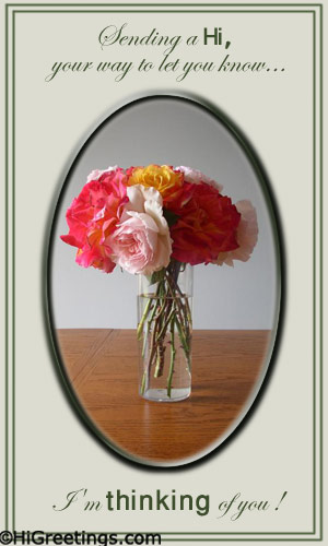 Sending a Hi, your way to let you know that I'm thinking of you; Send lovely wishes and warm greetings through this beautiful ecard with a bunch of lovely flowers, just from HiGreetings.com.