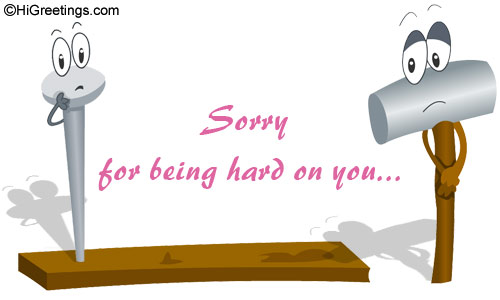 Sorry for being hard on you... A very cute card that is sure to bring a smile on your friend's face. Send this free sorry greetings card from HiGreetings.com to your loved ones. This ecard shows a hammer apologizing to the screw for hammering it so hard.