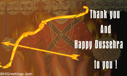 'Thankyou and happy Dussehra to you too'! Send this significant ecard as a reply to the person who has wished you blessed wishes of this special day. Wish all the people you know and also reply back the people who have wished you on this special day!