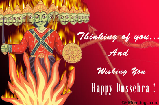 Say your beloved ones that you are thinking of them and wishing them Happy Dussehra through this bright ecard. Wish blessed Vijaya Dashmi through this vivid and expressive greetings card, all free from HiGreetings.com.