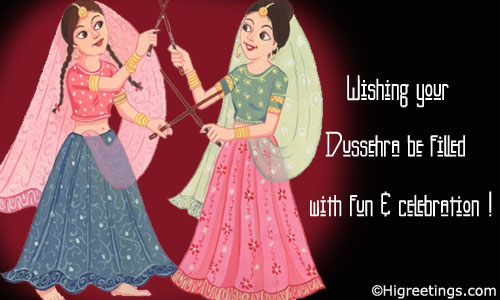 'Wishing your Dussehra be filled with fun and celebration.' Pass these lines through this lovely free Dussehra ecard, just from HiGreetings.com to your beloved family members, co-workers and friends.