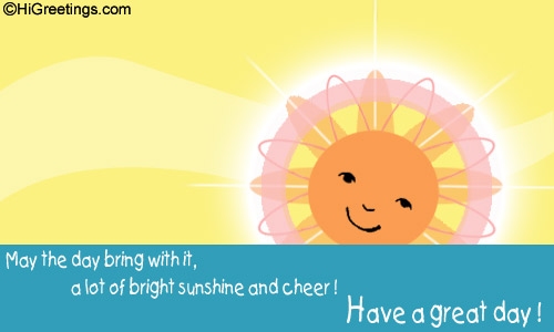 May the day bring with it lots of bright sunshine and cheer! Have a great day! Present this cute ecard to someone special to wish him/ her a bright and beautiful morning, through HiGreetings.com.