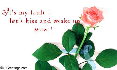 'It's my fault! Let's kiss and makeup now'! Say these words to apologize to your sweetheart for all the wrongs that you have done with her. Send this lovely rose card from HiGreetings.com to convey your message.