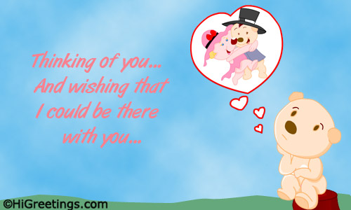 A very endearing character card to win your lady's heart over again. Tell her that you are thinking of her and wishing that you could be there with her all the time with this fun greetings card.