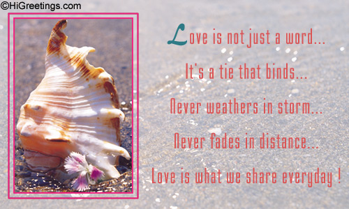 Love is not just a word; it's a tie that binds, never weathers in storm and never fades in distance... love is what we share everyday! Gift your beloved spouse or friend this greetings card to feel the love of your heart.