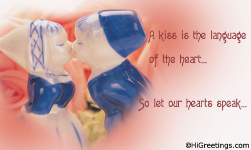 'A kiss is the language of the heart. So let the hearts speak out'. Let out what's there in your heart to your sweetheart with this cutely done greetings card from HiGreetings.com. Vent your true feelings to the one you love through this cartoonized ecard.